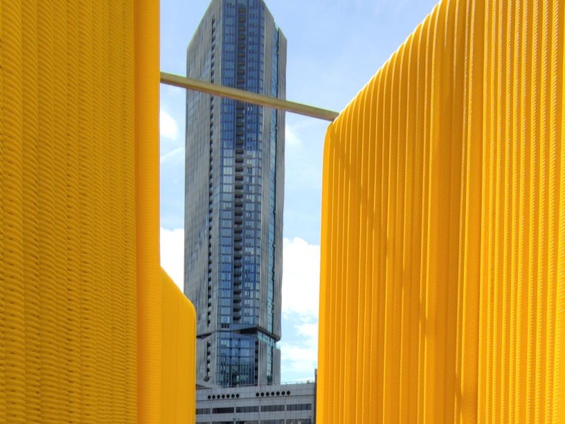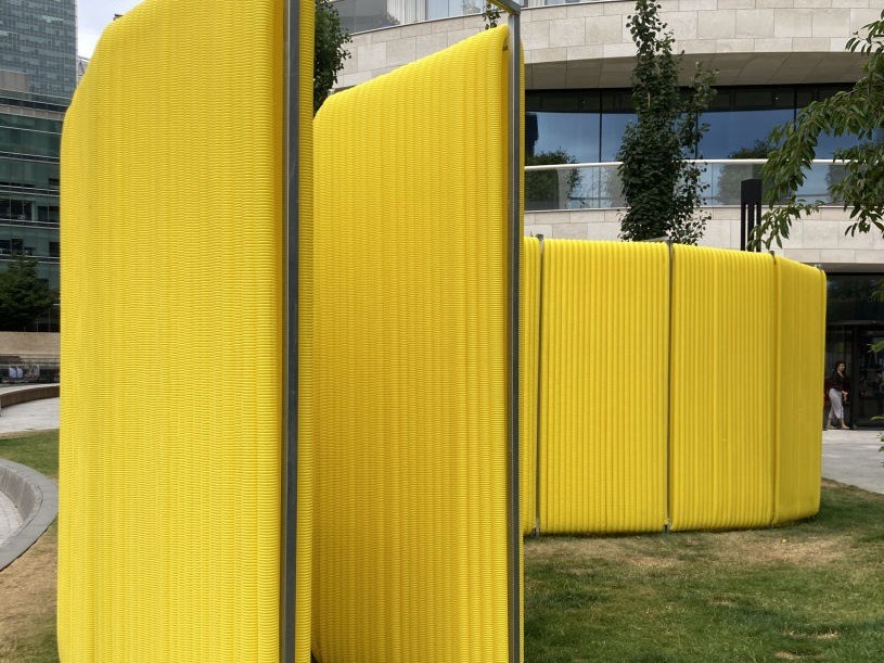 Inspirados nas linhas ondulantes de aço corten que se estendem no solo como se de um rolo de folhas finas e leves se tratasse, de Richard Serra, desenrolamos THE CLEW. O vermelho transforma-se em amarelo e capta a nossa atenção para um objeto abstrato.