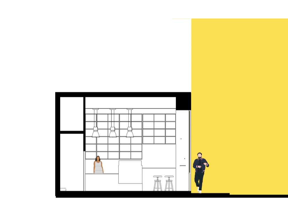 O desafio foi conseguir encaixar num espaço tão exíguo os diversos tipos de maquinaria e equipamentos de grandes dimensões necessário a este negócio, assim como a área de serviço obrigatória e wc de apoio. Para isso, tentámos tirar o melhor proveito possível do pé direito do espaço, sem que houvesse necessidade de recorrer a um piso em mezanino.