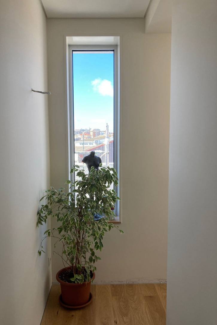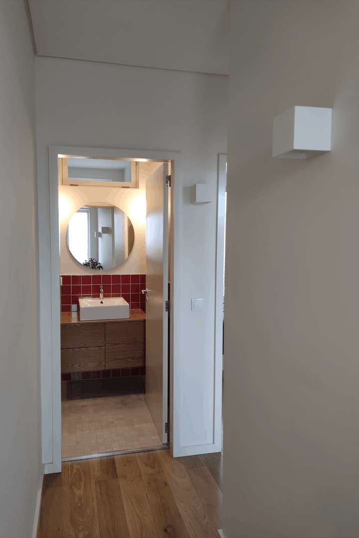 Neste projeto houve uma grande preocupação com eficiência energética e com a qualidade dos materiais que se refletiu no reforço de isolamento térmico e acústico da construção, na aplicação de ETICS nos paramentos exteriores, na substituição das caixilharias por caixilharia de classificação A+ e aplicação de toldos para reforço do sombreamento a sul, na escolha de equipamentos de climatização e de AQS também de classificação energética A, assim como no desenho de detalhe de todas as carpintarias interiores (cozinha, roupeiros, armários, wc) para maximização da arrumação.