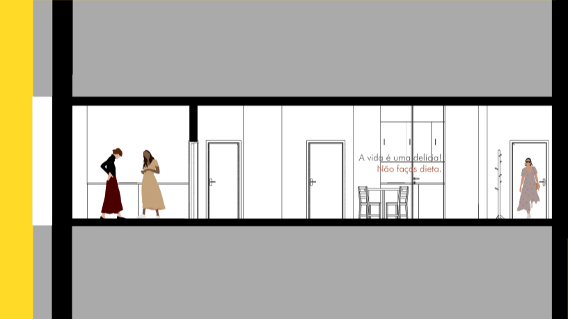 O elemento que funciona como âncora para toda a organização e leitura espacial é a copa. Esta não é entendida apenas como uma área funcional mas como o centro emocional do ambiente, promovendo conforto e convivência.